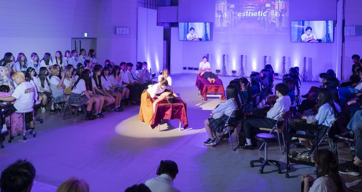fカレ生がデザイン力と技術力を競い合う業界からも高い注目を集めている学内コンテスト「ファッション&ビューティーライブ」など、学びの成果を表現できる場が多くあります。